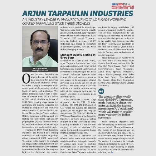 We are the Industry Leaders, Pioneers and the Largest Manufacturers of HDPE Plastic Tarpaulins / PVC Coated Nylon Tarpaulins / PVC from the World Class Base Fabrics from the Best Companies in the World.